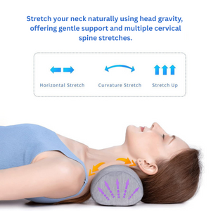 The candy-shaped core is made from responsive memory cotton that conforms to the neck’s natural curve while maintaining firm, structured support. The reverse bow design provides mild traction that helps decompress the cervical spine and reduce nerve pressure during sleep or rest.
