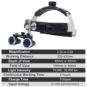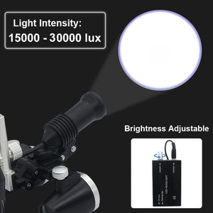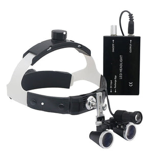 Including 2.5x/3.5x dental loupes and 3W LED headlight with high-quality headlight filter - preventing early unwanted polymerization of light-curing materials.