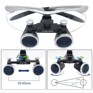 Our dental loupes are fully adjustable. This means that you never have to worry about us taking your measurements. You can adjust the interpupillary distance and lens angle of these lenses themselves so they really fit you. We also want to make sure that our customers with prescription glasses get extra help, so we come equipped with a clip attachment for attaching them onto your own glasses!