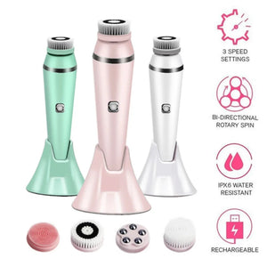 ✅ Complete 4-in-1 Skincare:Includes four interchangeable brush heads—soft bristle for daily cleaning, silicone for exfoliation, fiber brush for gentle washing, and a steel ball massage head for facial muscle relaxation and circulation. These head options give you a complete facial spa treatment right at home.