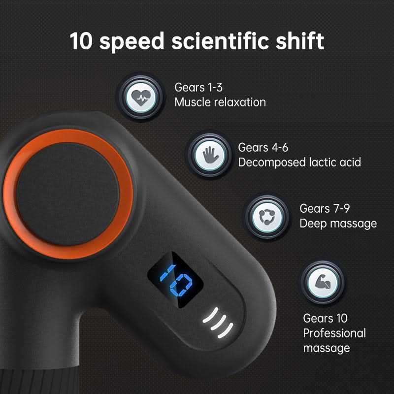 10-speed percussion — adjustable intensity for deep or gentle massage